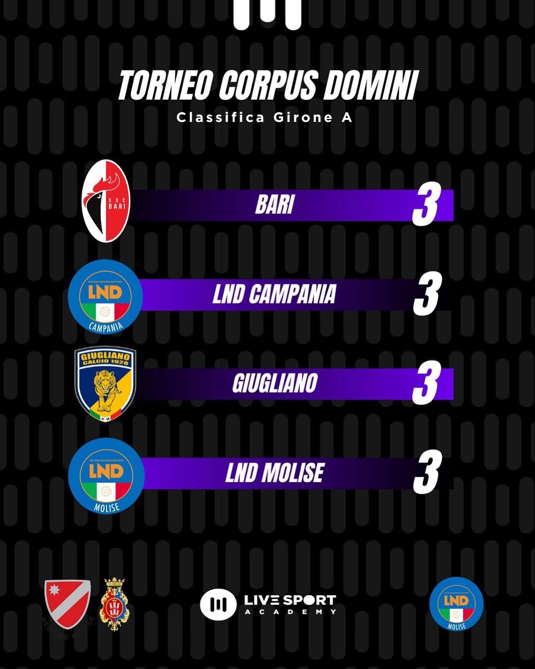 Si è conclusa la seconda giornata di gare del 4° Torneo di Corpus Domini Under 17 "Passione in campo, tradizione e storia in festa". Continua il successo dell’evento sportivo firmato Lega Nazionale Dilettanti - Comitato Regionale Molise, Regione Molise e Comune di Campobasso il quale celebra, anche attraverso il nobile giuoco del calcio, la Festa del Corpus Domini, fiore all’occhiello della città di Campobasso, nel suo essere da sempre un connubio perfetto di religiosità, folklore e tradizione. Grande entusiasmo e voglia di fare la differenza da parte dei club del circuito professionistico e delle rappresentative dei comitati regionali, coinvolti tutti in un evento che resterà sulla pelle dei giovani calciatori.